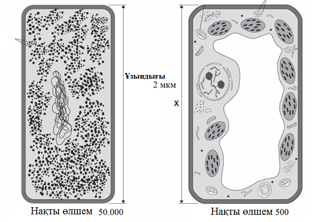 1 Бактерия және өсімдік жасушасының сызықтық ұлғаюын есептеңіз .