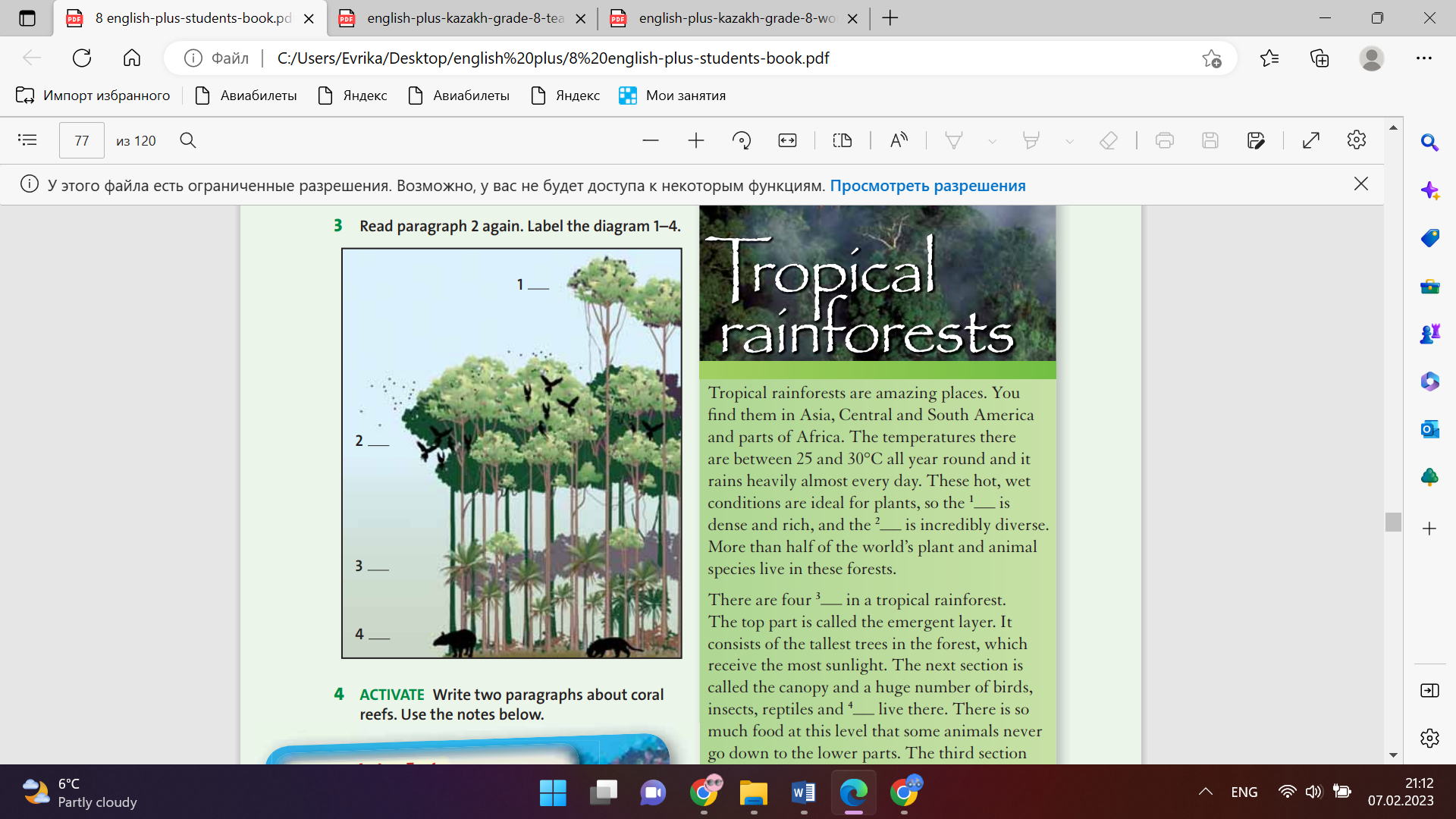 Students answer the questions. Do you enjoy going on school trips? What trips have you been on recently? ANSWERS: Students own answers Students read the story. Did the writer enjoy the trip? ANSWERS: Yes, the writer enjoyed the trip. Key sentences and phrases: I was very excited, amazing, beautiful, I was tired but really happy, I learnt a lot, made some new friends. Students complete the key phrases with the correct prepositions. Then read the model text. ANSWERS: 1 from 2 to 3 by 4 on 5 By 6 A |