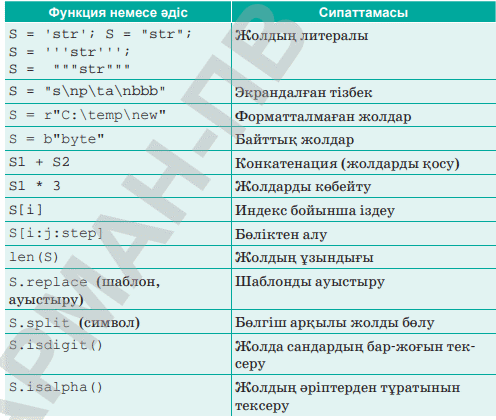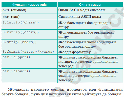 ҚМЖ. Жолдарды өңдеу үшін пайдаланылатын процедуралар мен функциялар.10-сынып