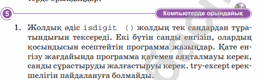 1-тапсырманы орындайды 2-тапсырманы орындайды 3- тасырманы орындайды Сергіту сәтін орындайды Сұраққа жауап береді 4- тасырманы орындайды |