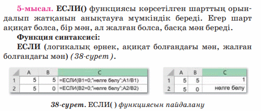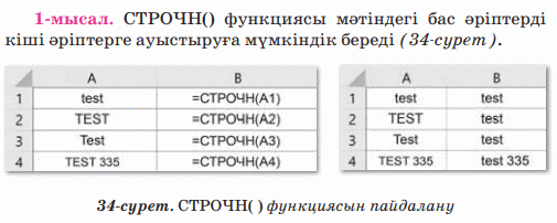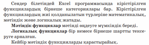 Кірістірілген функциялар : мәтіндік және логикалық функциялар |