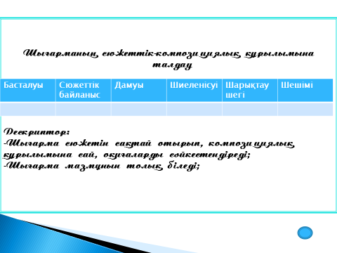 6.1.1.1 әдеби шығарманың жанрын, фабуласын, сюжетін анықтау; |