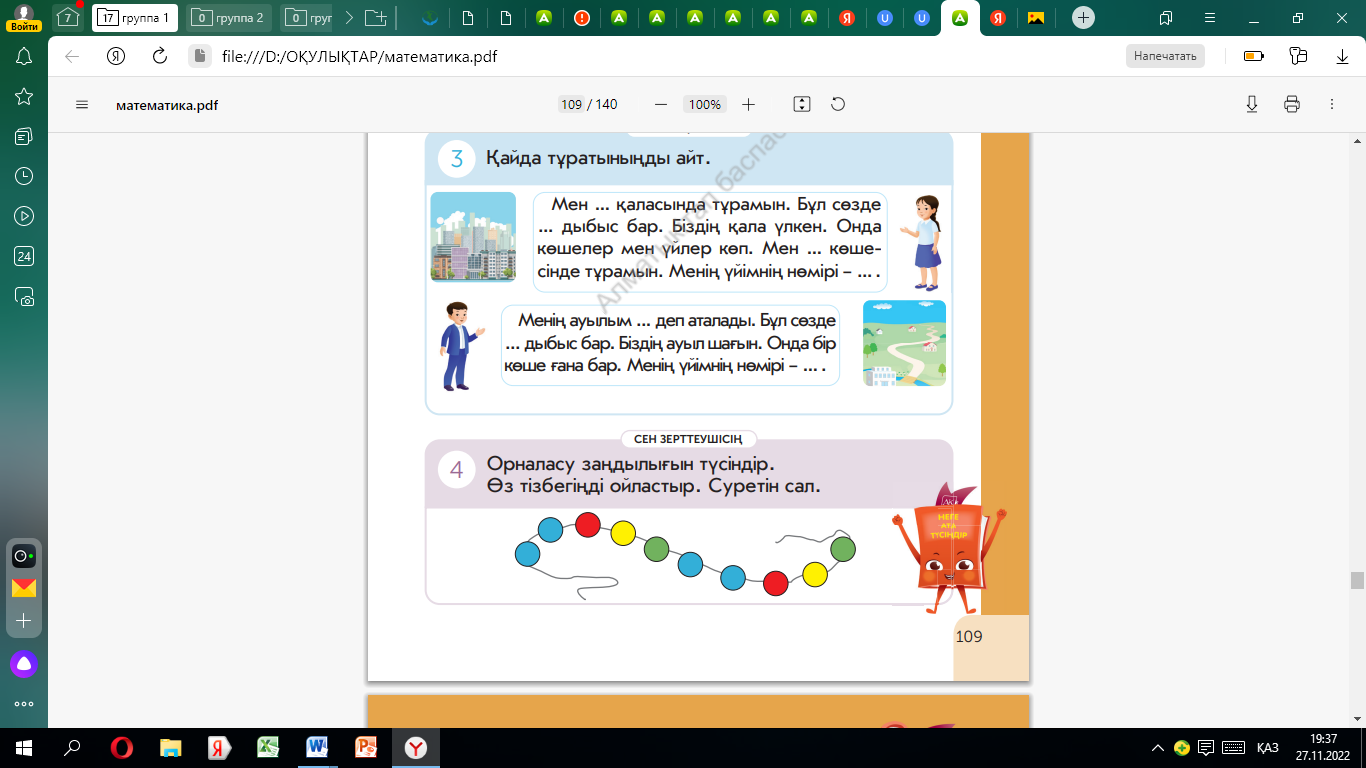 Оқулық №1, 122 бет Ламинат маркер Таратпа қаламсап |