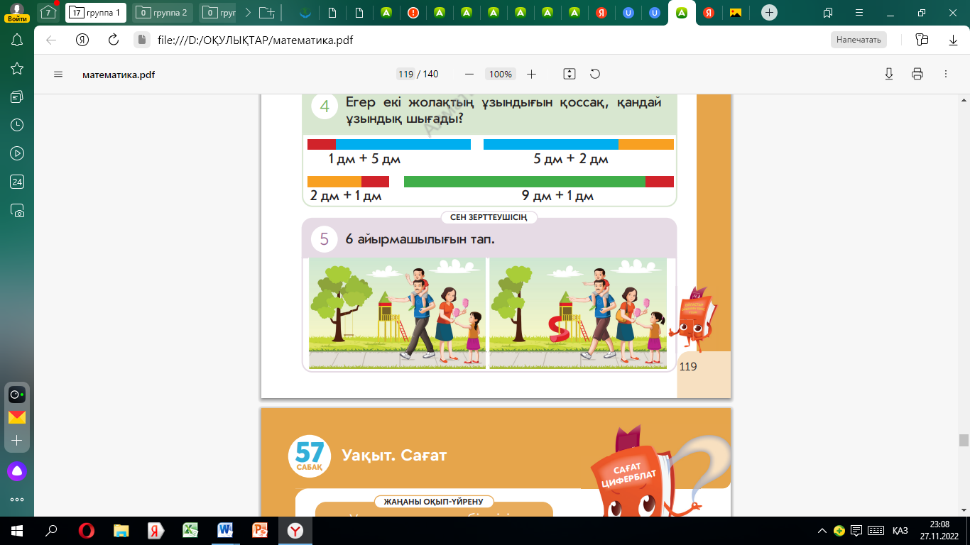 жасырылған санды анықтап, жазады бір таңбалы сандарды, ондықтарды қосып, азайтады таспаның ұзындығын дециметрге түрлендіреді |