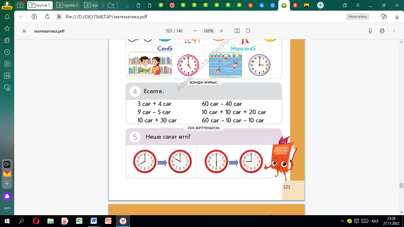 Мысалдардың мәнін есептейді Сағатқа сәйкес уақытты сызып көрсетеді |