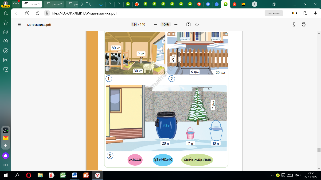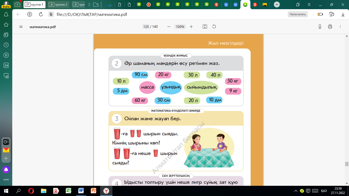 Масса_________________________________________________________________ Ұзындық______________________________________________________________ Сыйымдылық_________________________________________________________ |