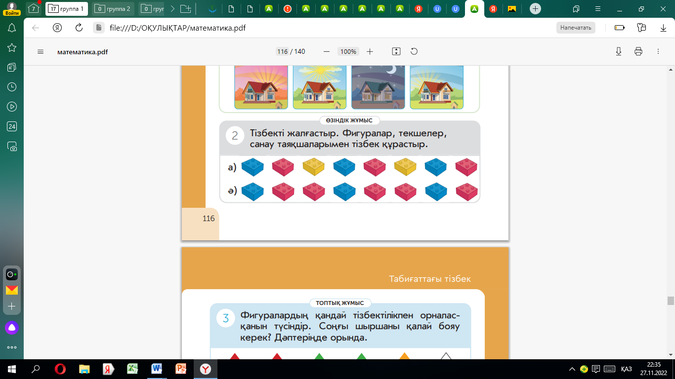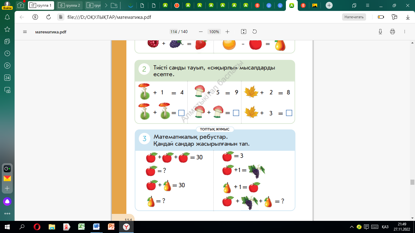 Оқулық №1,106-бет Таратпа қаламсап Оқулық №2, 107 бет Ламинат маркер Дәптер қаламсап |