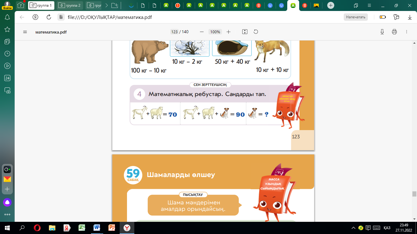 1. жануарлардың массасын атайды 2.жануарлардың массасын өсу ретімен жазады