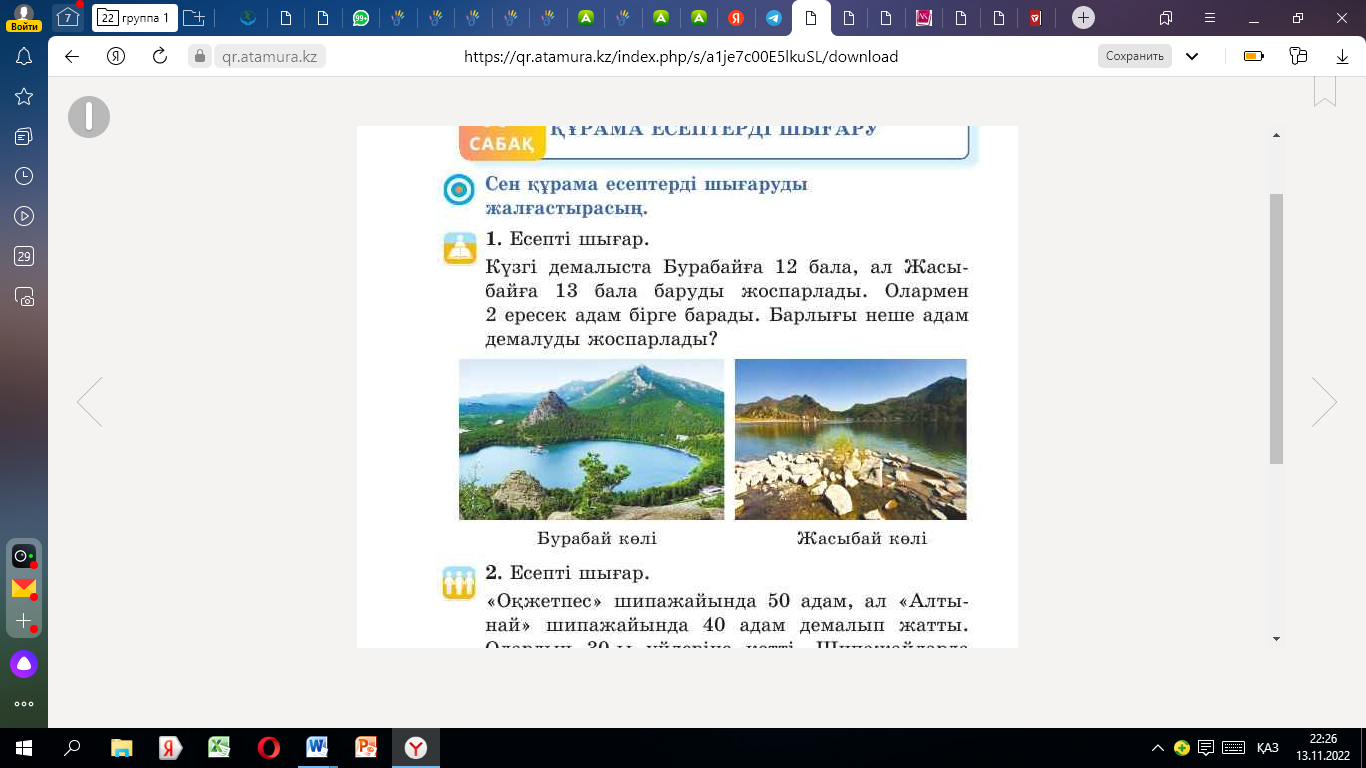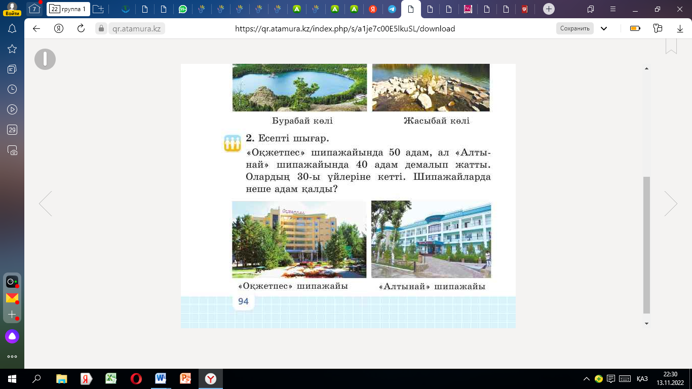 Оқулық №1 94-бет Бурабай мен Жасыбай көлінің суреті А4 Ламинат Маркер Таратпа |