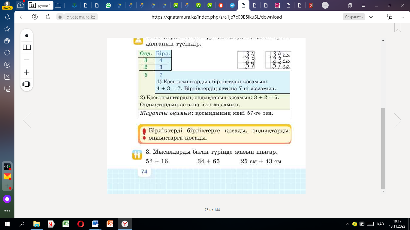 Мысалдар жазылған А4 Ереже жазылған А4 Оқулық №3 74 -бет |