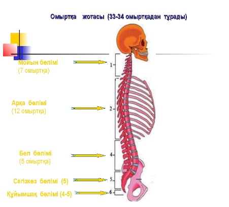 Бет бөлігіМи сауыты бөлігіОмыртқа жотасы Кеуде қуыс Қ Иық белдеуіҚолдың еркін қозғалатын бөлігі Жамбас Аяқтың еркін қозғалатын бөлімі Сүйектің түрлері.