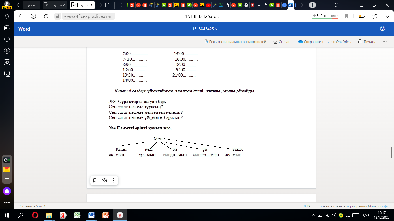 7 мин Сергіту сәті 1 минут |