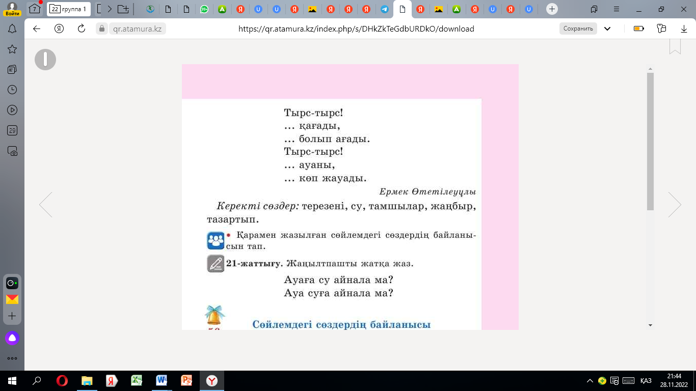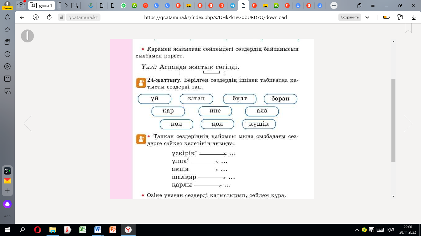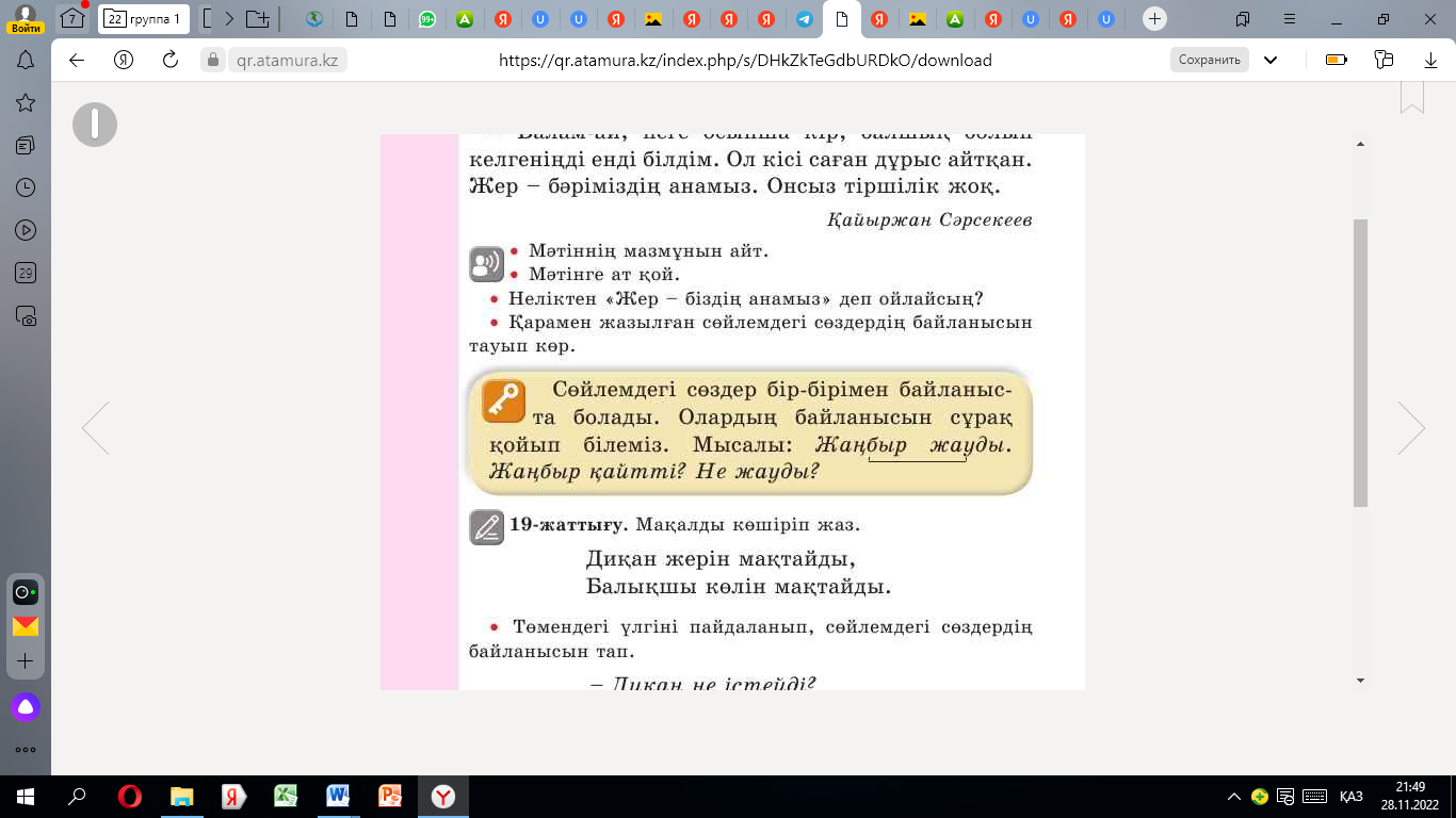 2.4.2.6 - сөйлемдегі бір-бірімен байланысып тұрған сөздерді табу |