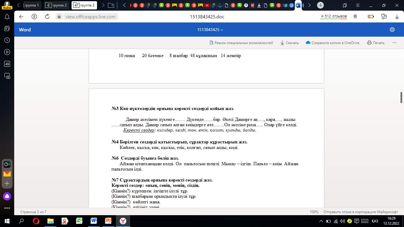 көп нүктенің орнына қажетті әріпті қойып,жазады шашылған сөйлемдерден мәтін құрастырады |