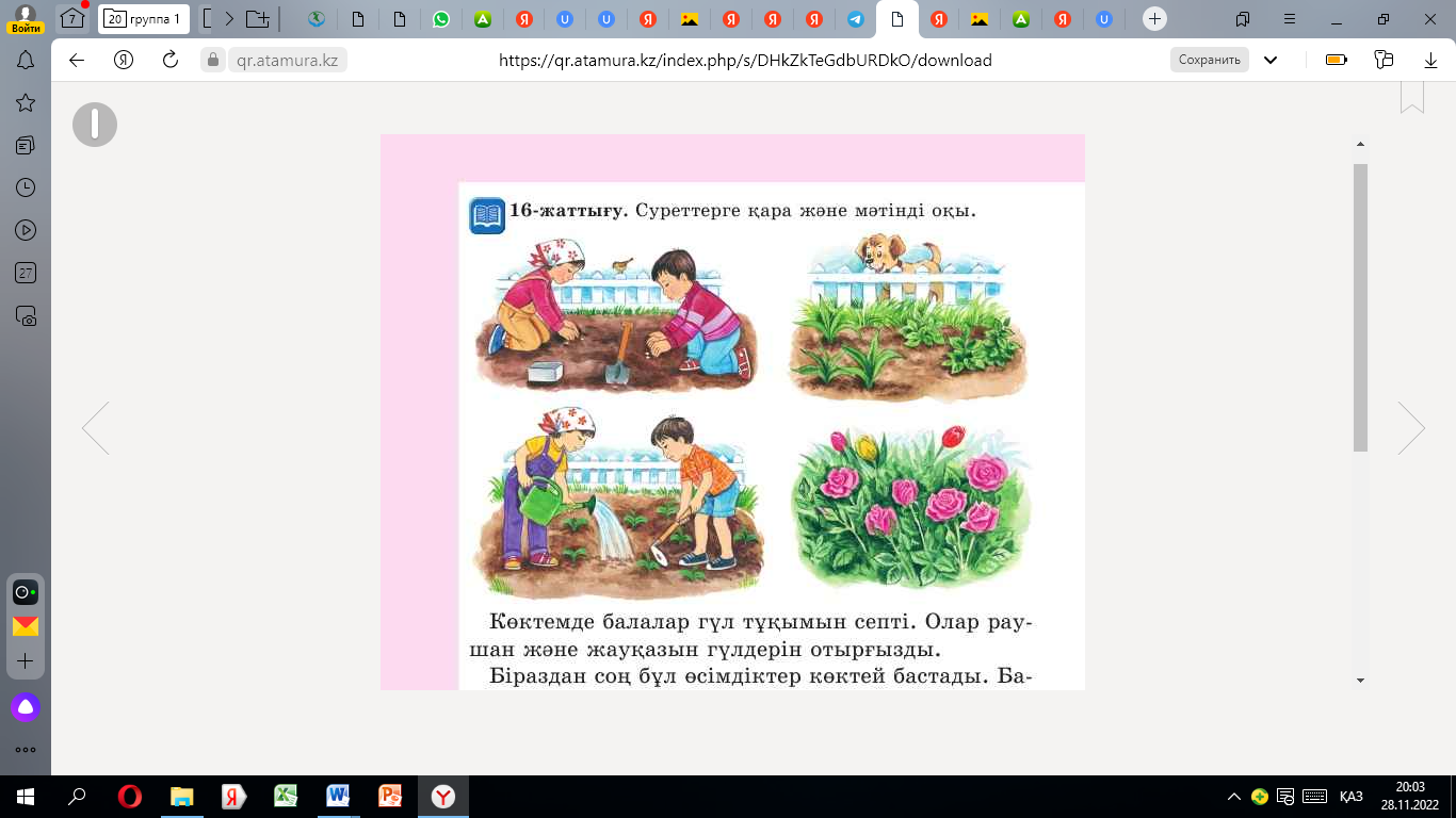 1. мәтін мазмұны бойынша лепті сөйлем құрастырады 2.мәтінді әрі қарай жалғастырып жазады Сұраққа жауап береді Балалар жаттығу жасайды |
