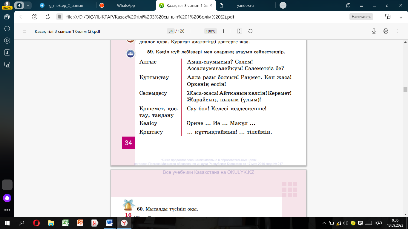 Оқулық 61-жаттығу 35,36-бет Дәптер қаламсап Бейнежазба |