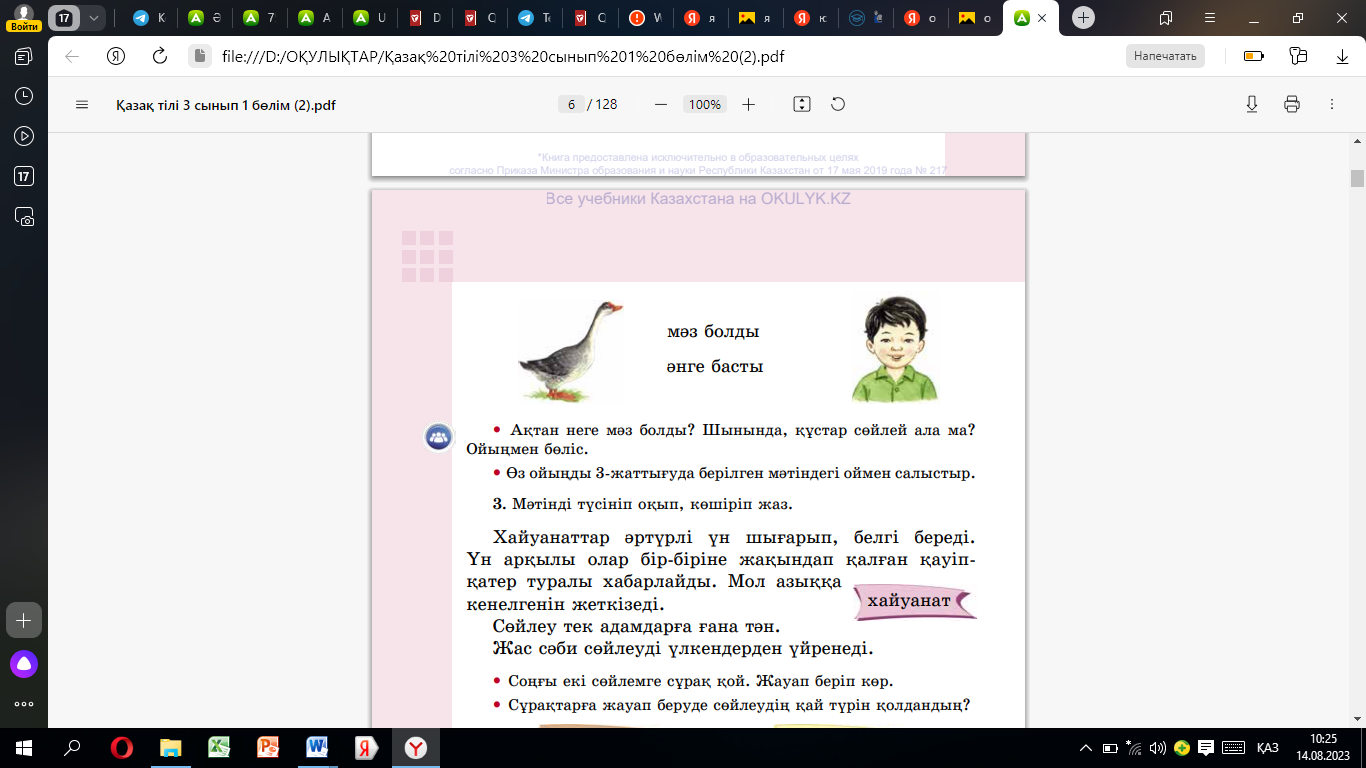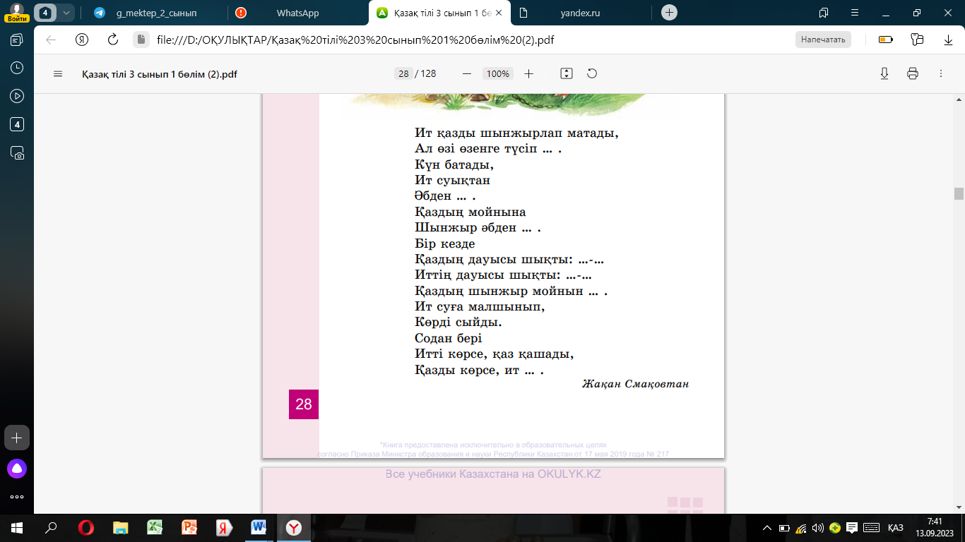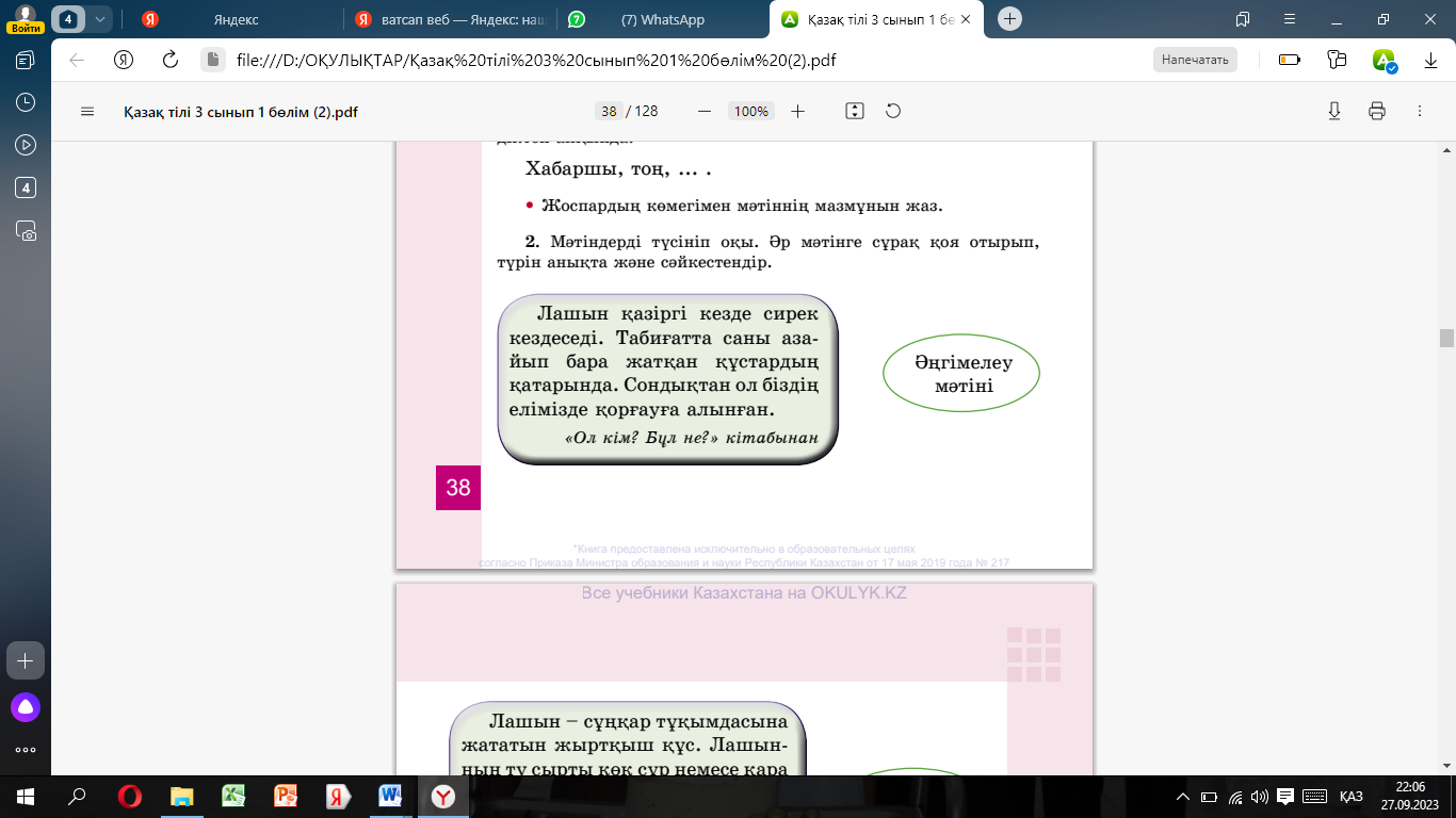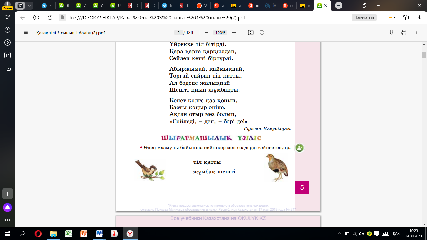 Оқулық 3-жаттығу 6-бет Бейнежазба |