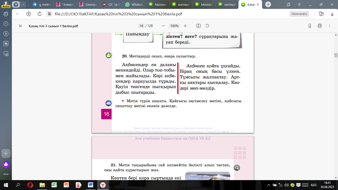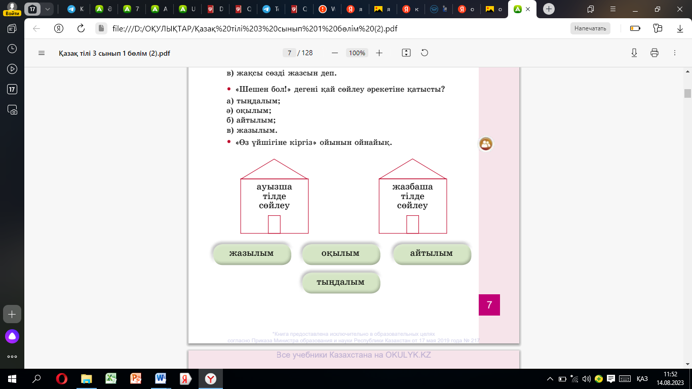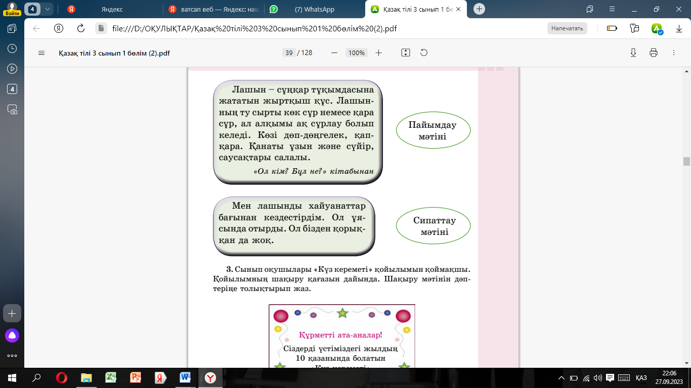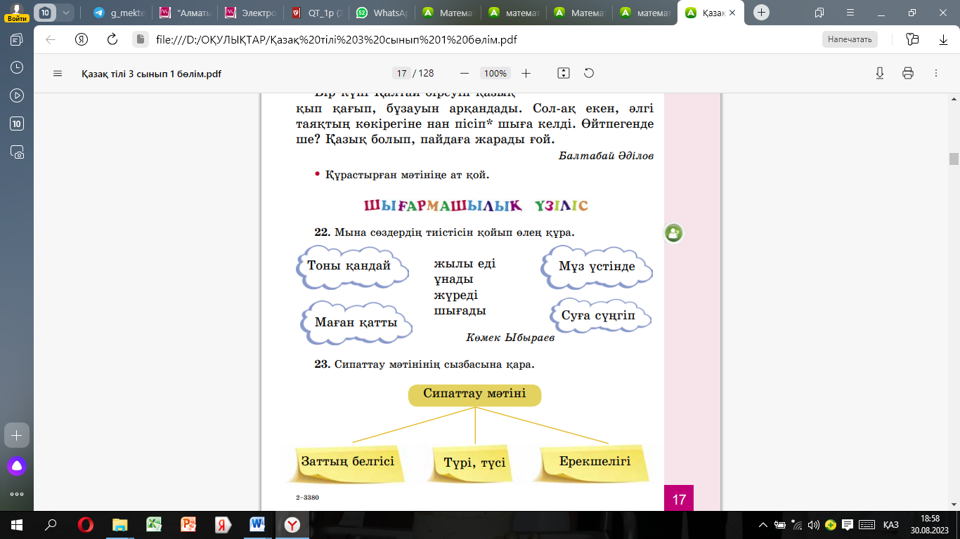 Оқулық 3-жаттығу 6-бет Бейнежазба |