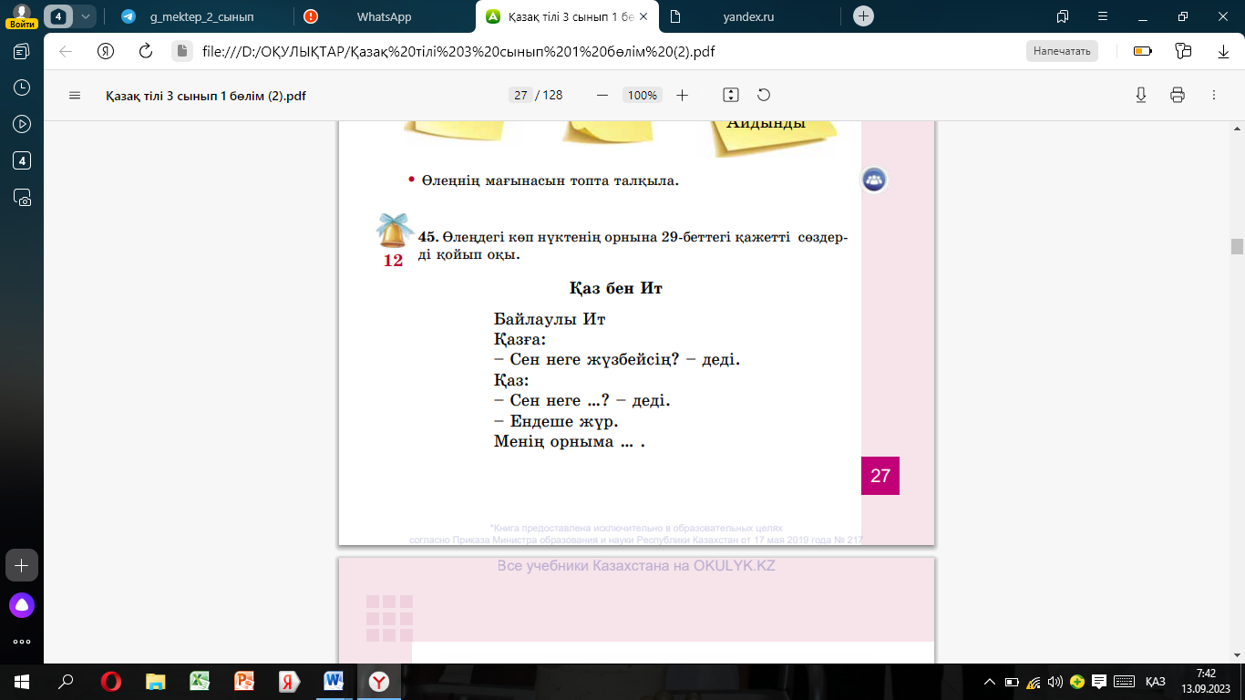 ҚМЖ ҚАЗАҚ ТІЛІ ҚЫРКҮЙЕК айы толық 3 сынып