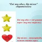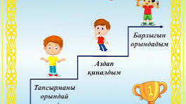 1.ҰЖ. Сөздікпен жұмыс. Жаңа сөздермен таныстырады, оқушыларға қайталатады, жаңа тақырыпқа байланысты сөздіктермен жұмыс жүргізеді. 2. ҰЖ.Тыңдалым. Сілтеме бойынша аудиомәтінді мұқият тыңдатады. Сұраққа жауап береді: «Ой түрткі» әдісі. Мәтінде кім туралы айтылған? Н.Назарбаев туралы не білесіңдер? 3.Айтылым. Жазылым. Жұптық жұмыс. Мәтін бойынша тапсырмалар орындаймыз. Мәтіннен сан есімдерді теріп жаз және оларды мағынасына қарай анықта. Сан есім — заттың санын, мөлшерін, ретін, шамасын білдіретін сөз табы. Сан есімдер есептік сан, реттік сан, болжалдық сан, жинақтық сан, топтық сан, бөлшектік сан болып алты топқа бөлінеді. 5.Жазылым Ұжымдық жұмыс. Тілдік бағдар. Мезгіл үстеу қимылдын, іс-әрекеттің мезгілін, мерзімін білдіреді де, қашан? қашаннан? деген сұрақтарға жауап береді. Мезгіл үстеуі етістікпен тіркесіп қолданылады. Мысалы: бүгін келді, ертең барады, таңертең тұрады, бұрын жүрді, күні бойы дайындалды, күні-түні оқиды, жазғытұрым келеді т. б. |