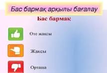 Мұғалім формативті бағалауы бойынша қорытынды балын қояды. Смайликтер арқылы формативті бағалау жүргізіледі. |