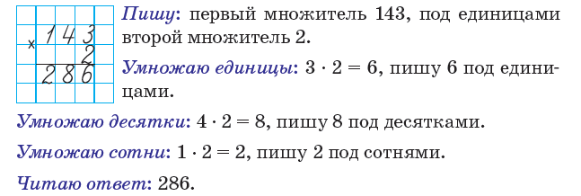-мына жағдайда: 123∙2 үш таңбалы сандарды бір таңбалы санға жазбаша көбейту мен бөлу алгоритмін түсіндіре алады. |
