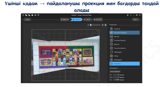 Үшінші қадам – пайдаланушы проекция мен бағдарды таңдай алады.