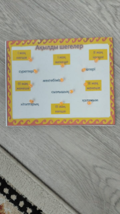 І.Ұйымдастыру Шаттық шеңбері Гүл өсірсең терлеп, Мұның аты-еңбек. Кесте тіксең зерлеп, Мұның аты-еңбек. Сабағыңа жөндеп Әзірленсең-еңбек. Қиындықтың бәрін Еңбек қана жеңбек. ІІ.Өткенді пысықтау (ұжымда) «Ғажайып ұяшық» әдісі -Зат есім дегеніміз не? -Зат есімнің сұрақтарын ата -Түбір сөзге жұрнақ жалғану арқылы жасалған зат есімді не дейміз? - Тәуелдік жалғауы дегеніміз не? - сыныбың сөзі қай жақта тәуелденіп тұр? - оқулық сөзін жекеше түрде тәуелдеп айт - дәптер сөзін көпше түрде тәуелдеп айт Бүгінгі сабақ тақырыбы мен мақсаты хабарланады. |