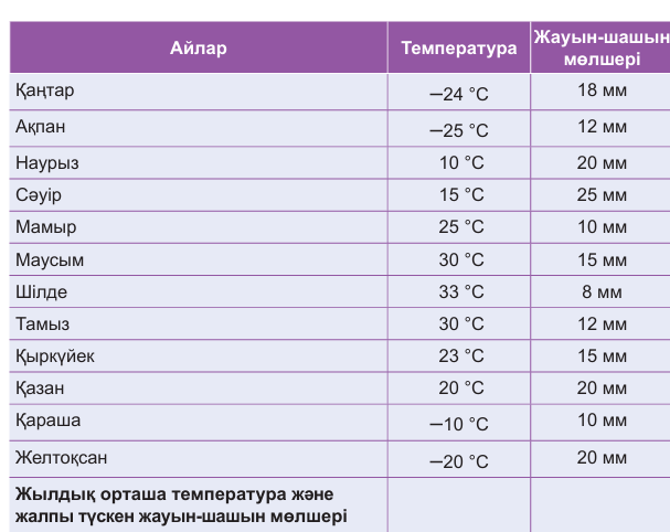 Тақырып баршаңызға түсінікті деп ойлаймын. Егер түсінбеген жерлеріңіз болса, бірге талқылайық. Келесі кезекте таырыпты толық қамту үшін практикалық тапсырма орындаймыз. Сіздерге тапсырмалар берілген парақшалар беріледі. Практикалық тапсырма: 1 тапсырма. Excel-ге сынып оқушыларының жасы туралы кесте құрыңдар. Кірістірілген функцияларды пайдаланып, сыныптағы оқушылардың орташа жасын есептеңдер. 2 тапсырма. Төмендегі мәліметтерді кестеге енгізіп, 1 жылдағы орташа температураны және жалпы түскен жауын-шашынның смөлшерін анықтаңдар.