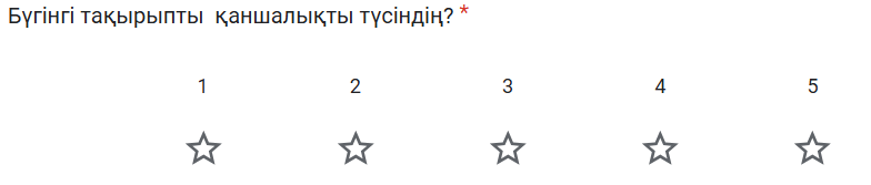 Кері байланыс: Сабақ туралы өз пікірін білдіреді: "Сабақ ұнады ма?" "Мен барлық тапсырманы дұрыс орындадым ба?" "Маған қиындық тудырған сәттер болды ма?"