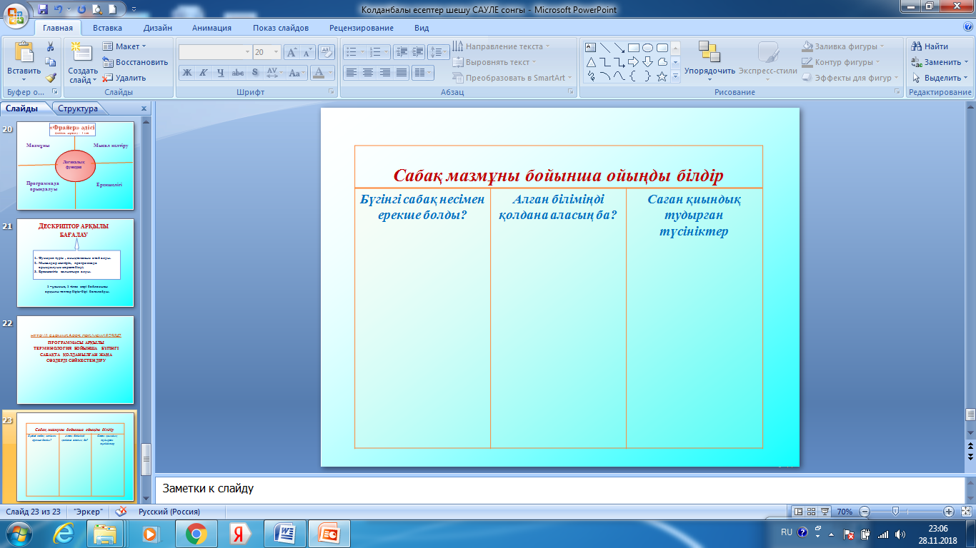 «Сабақ мазмұны бойынша ойыңды білдір» кері байланысы. «1 сөйлеммен түйіндеу» әдісі |