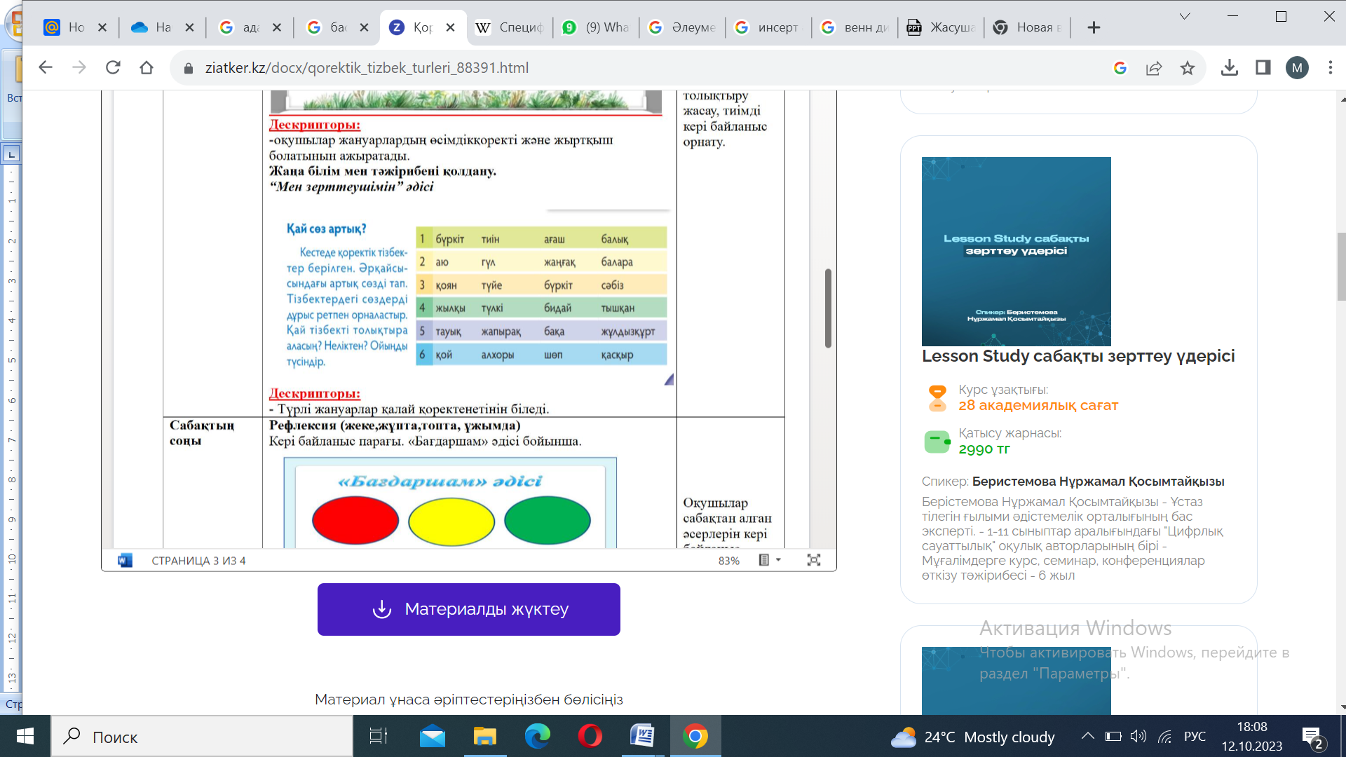 Сабақтың кезеңі/уа қыты |