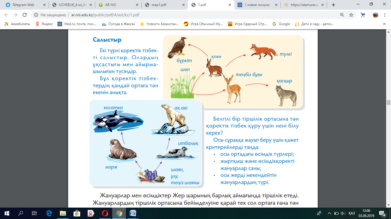 Екі түрлі қоректік тізбекті салыстыр. Олардың айырмашылығы мен ұқсастықтарын ата.