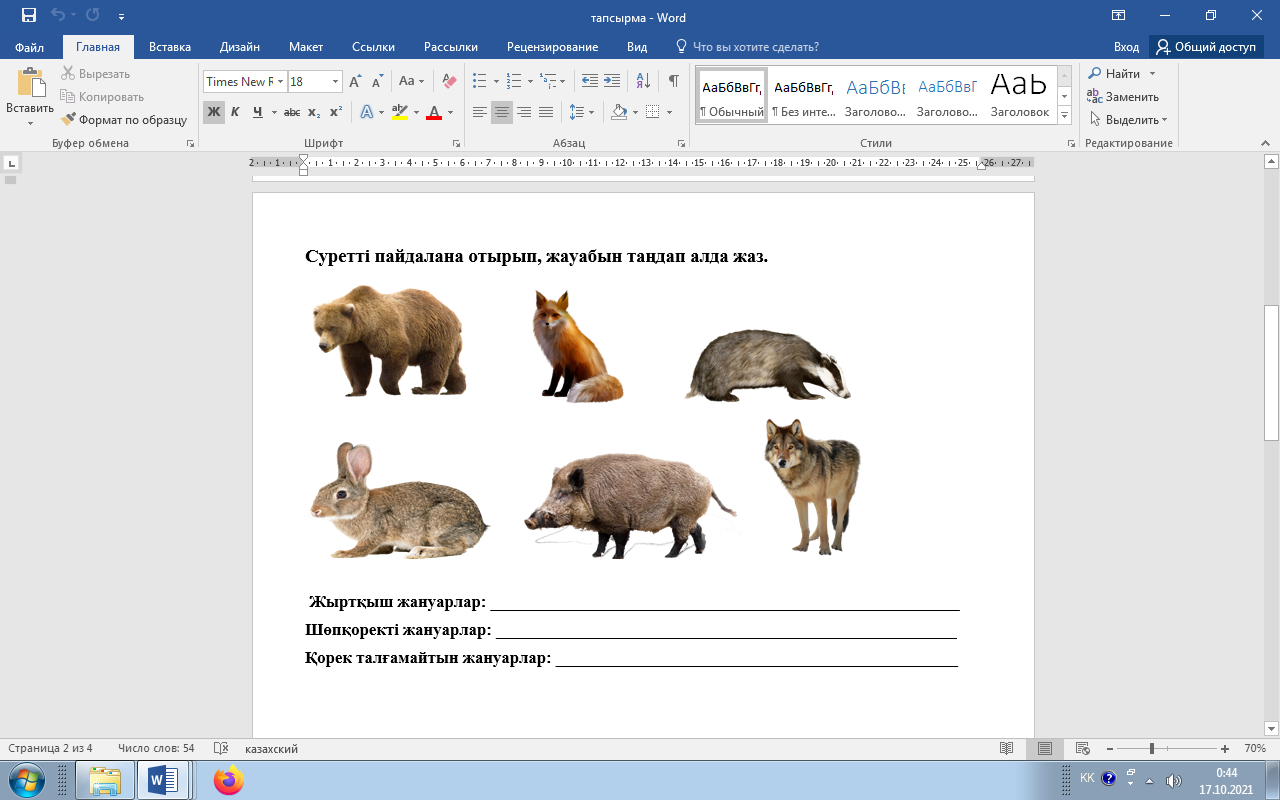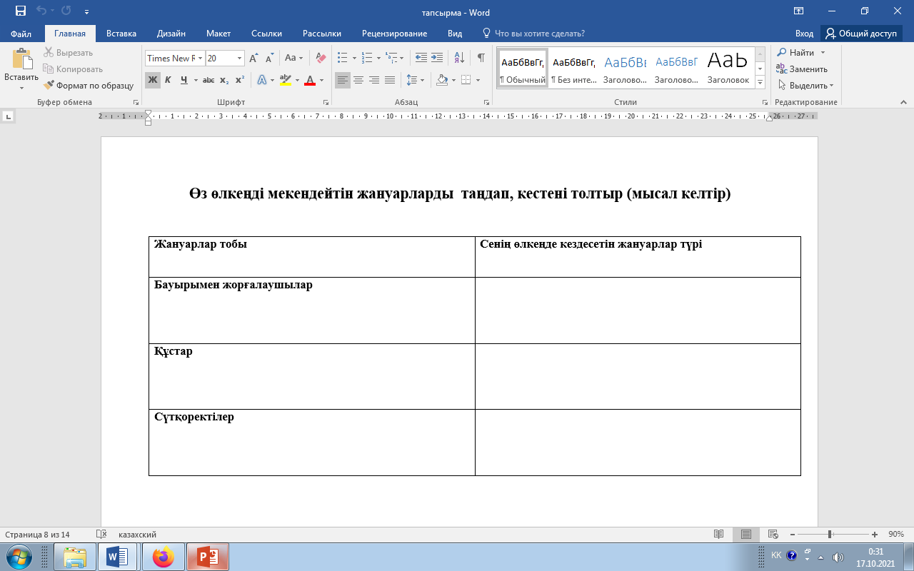 6-тапсырма Өз өлкеңде мекендейтін жануар туралы таныстырылым жаса.