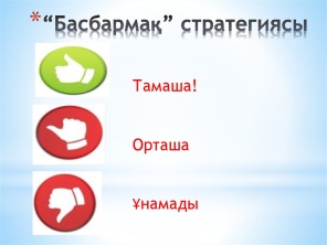Бағалау дескрипторларын ұсыну Оқушылар сабаққа қатысу белсенділігіне қарай қалыптастырушы бағалаумен бағаланады ҚБ. Нақты әрі дұрыс жауап! ҚБ: Мықты жауап болды!