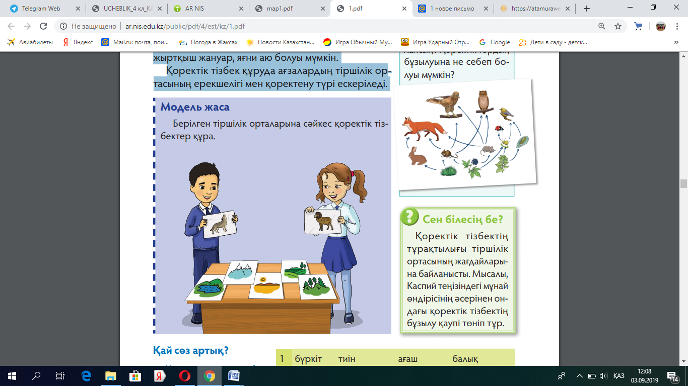 Жаңа білім мен тәжірибені қолдану 2-тапсырма Қоректік тізбек жаса