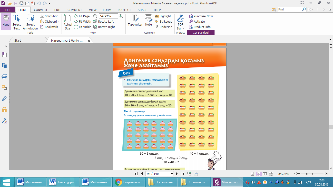 1.1.2.5 ** 20 көлеміндегі сандарды ондықтан аттамай ауызша қосу және азайту/ондықтарды ауызша қосу және азайту амалдарын орындау 1.2.1.1 ** сандық өрнектерді құру,оқу,жазу және тану (қосындылар,айырмалар ) 1.5.2.2 ** «+», «-», «=» белгілерін пайдалану. қосудың ауыстырымдылық қасиетін біледі; 0 және 1-дің қасиетін қолданады; |
