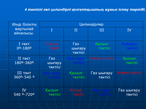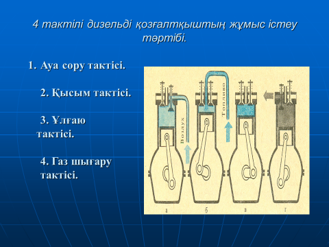 Төрт тактілі двигательдің схемасы мен жұмыс істеу тәртібі