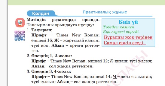 3.2.1.4 шрифт пен абзацты пішімдеу |