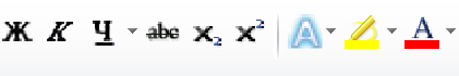 Қаріптің жазылуын өзгерту үшін Ж,К,Ч әріптерінің бірін таңдаймыз. Бұл жерде Ж (полужирный)-жартылай қалың жазуды, К(курсив)қиғаш жазуды, Ч (подчеркнутый)-астын сызып жазуды білдіреді. Қаріптің түсін өзгерту үшін, А-түс өзгерту батырмасын басамыз.
