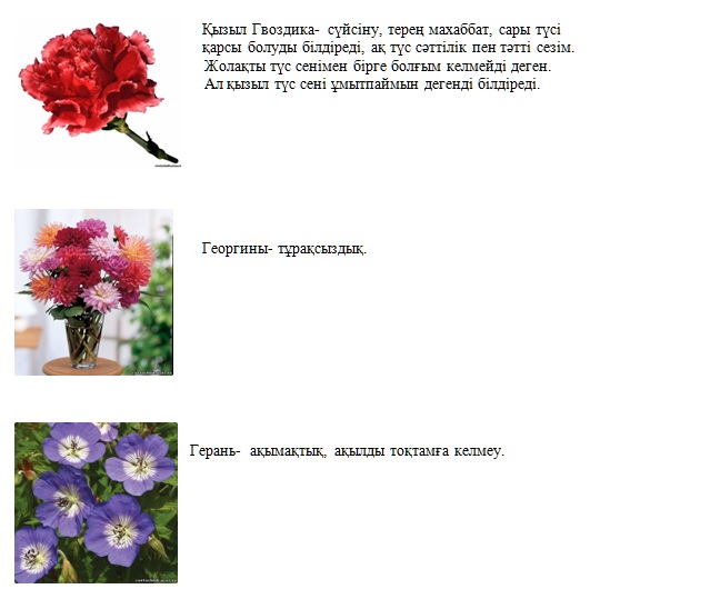 1. Оқушыларға гүлдер жайлы түсіндіре отырып, нарғызгүлі туралы және оның шығу тарихын баяндау.