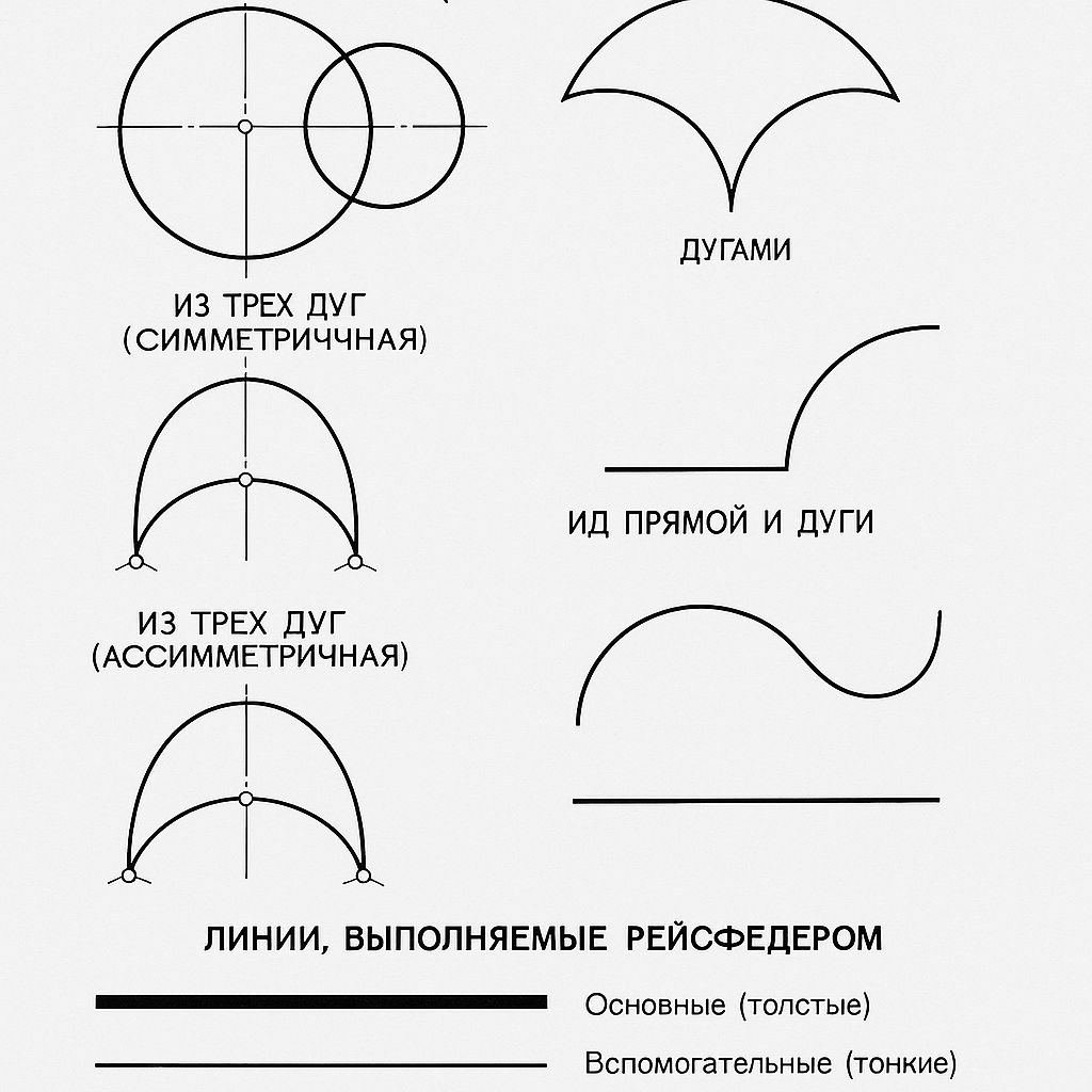 Құрама доғалық және итексызғышпен орындалатын сызықтар.