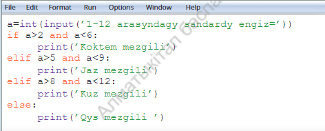 7.3.3.3 Python программалау тіліндегі күрделі шарттарды қолдану. |