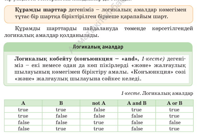 Күрделі шарттар дегеніміз не? Күрделі шарттар – бірнеше логикалық операторларды (and, or, not) біріктіріп қолдану арқылы жасалады. Python-да негізгі логикалық операторлар: