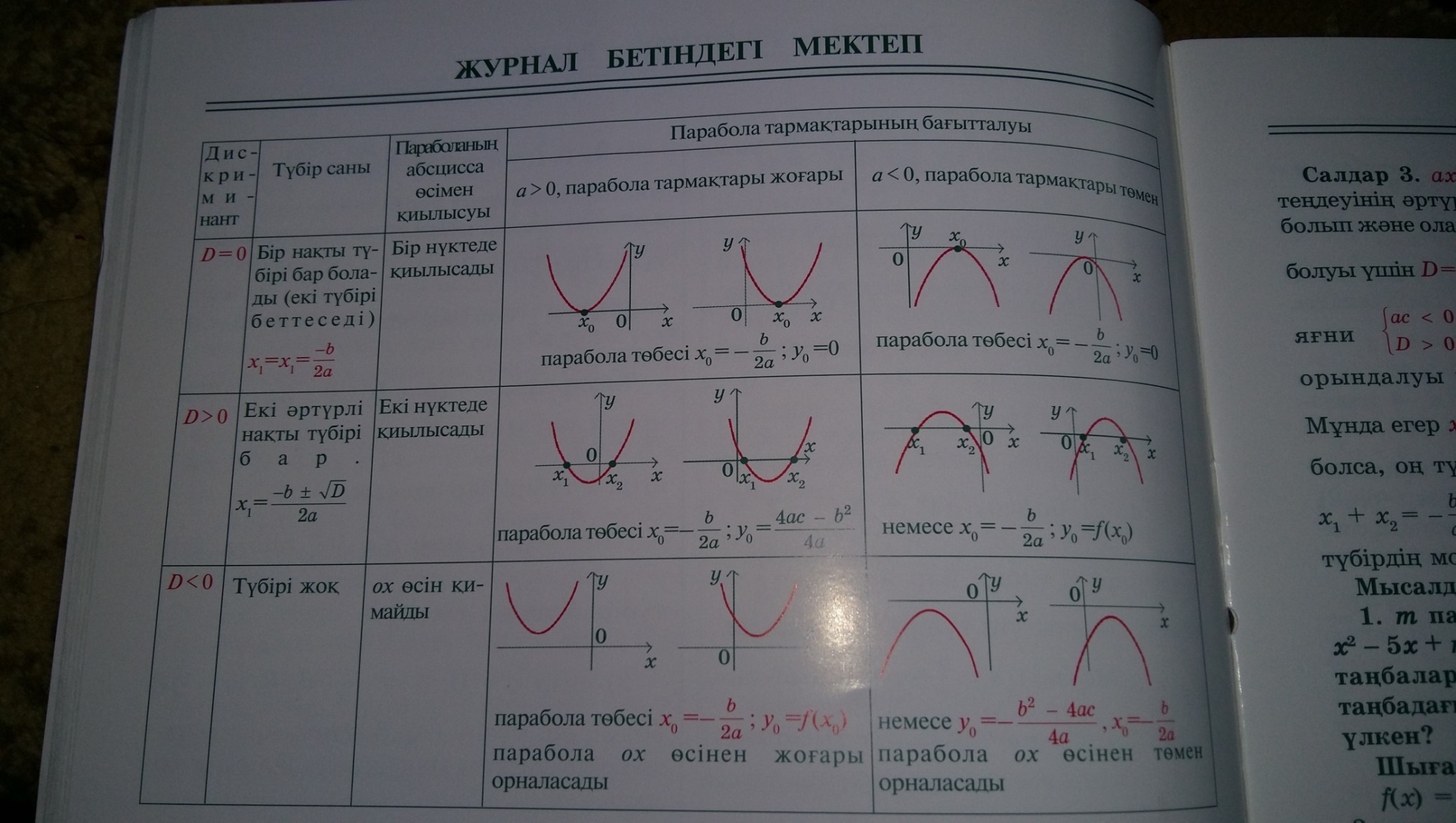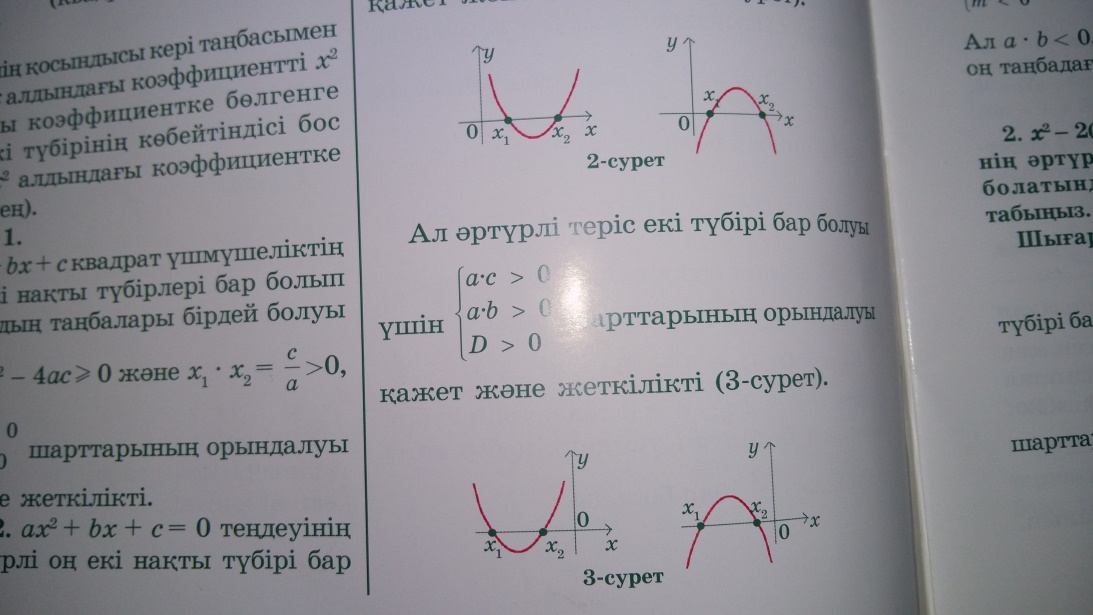 түбірлерінің таңбалары әртүрлі 5) a=2 болса, x=