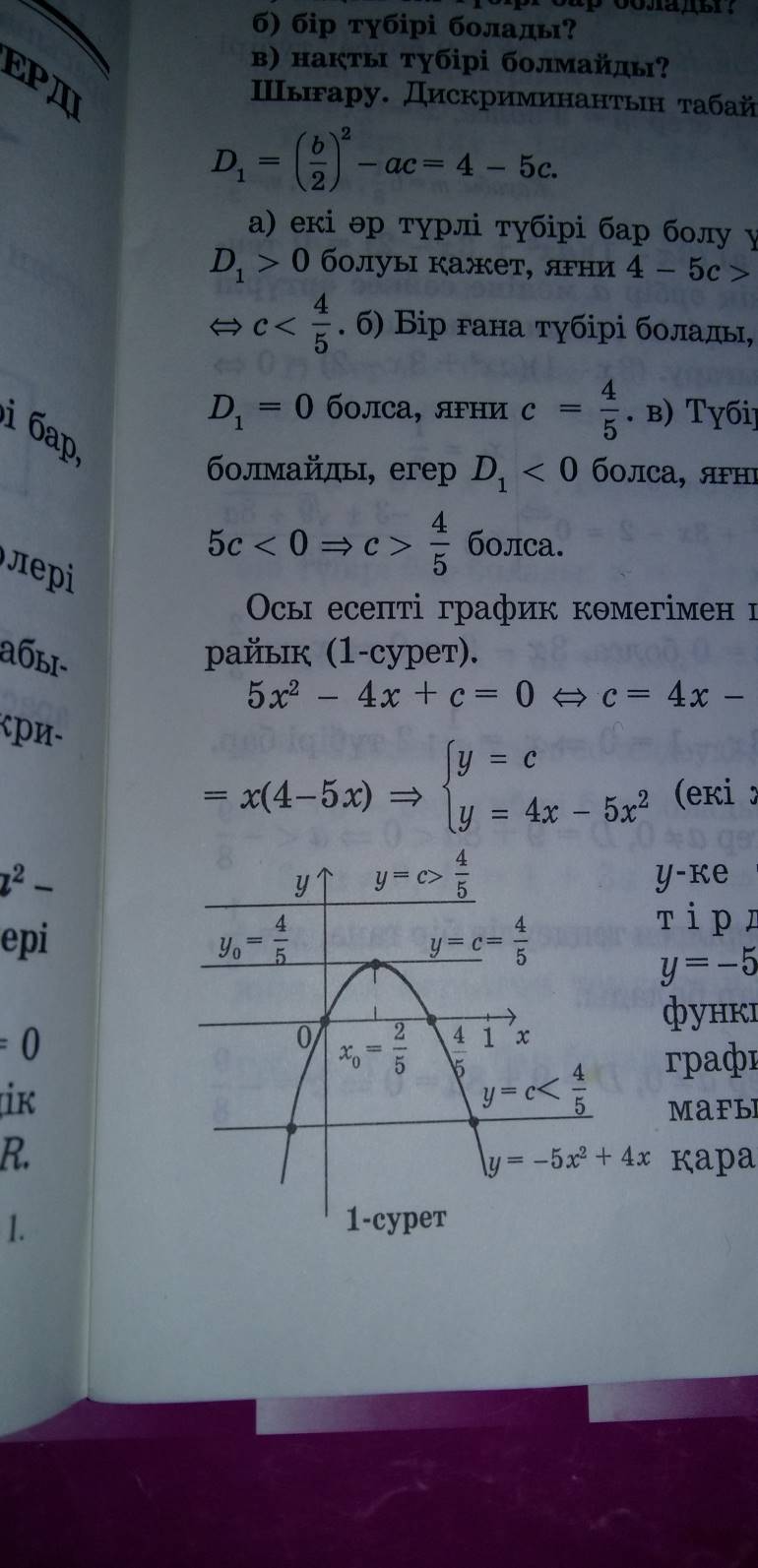 m=-5 болса, түбірдің бірі 0-ге тең; m>1 болса нақты түбірлері