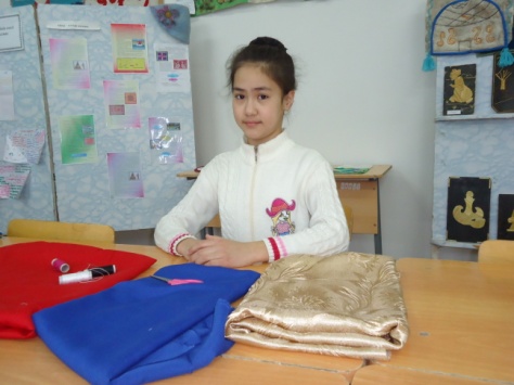 Жұмысты жасау барысында көптеген зерттеме жұмыстарын жүргіздім. Өз жұмысымның ерекшелігі қазақтың салт-дәстүрін, ұлттық қолөнер туындыларын зерттей отырып, құрақ өнерін меңгердім. Жалпы, құрақ өнерін зерттеу барысында, оның түрлерін, жасалу жолдары, тарихы айтылған. Адам, қоғам үшін құрақ өнерінің жасалуын зерделей келе қолөнер байлығымыз екенін білдім. Құрақ – қызық, әрі құнды өнер. Ол ұзақ ізденісті, ыждағатты қол еңбегін қажет ететін іс. Шын шеберлікке қоса табандылықты талап етеді.