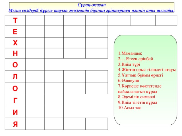 –құрақ өнері арқылы халықтың қолөнерін, салт-дәстүрін біледі.