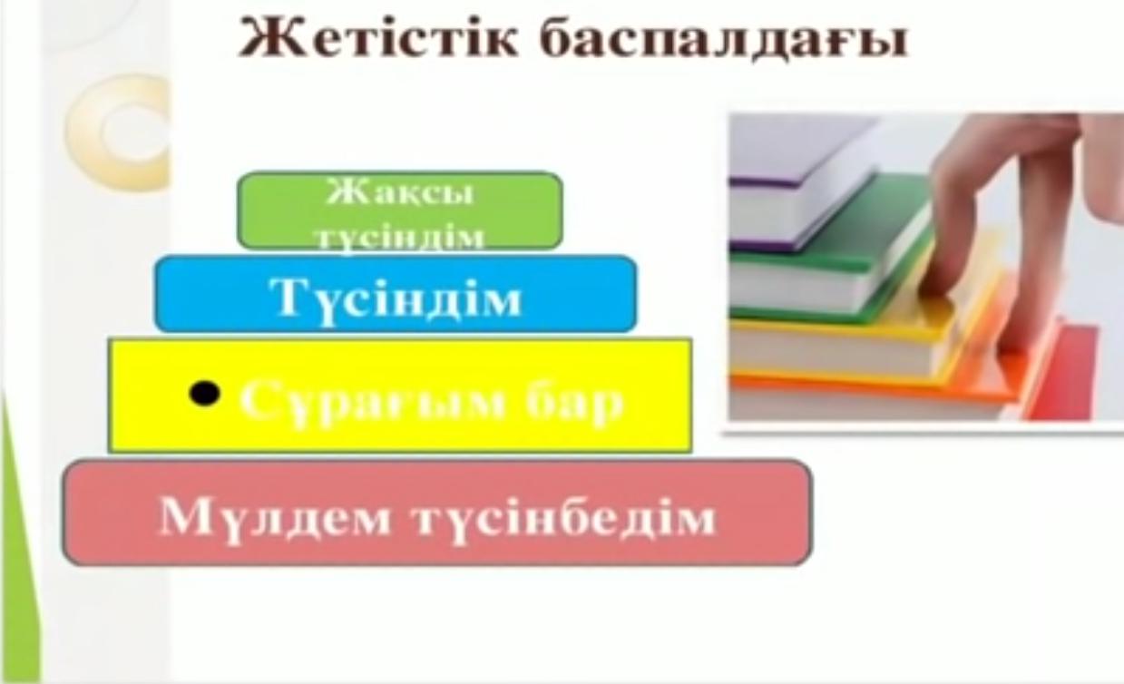 Рефлексия Сабақ / оқу мақсаттары шынайы ма? Бүгін оқушылар не білді? Сыныптағы ахуал Бұл материал сайт қолданушысы жариялаған. Материалдың ішінде жазылған барлық ақпаратқа жауапкершілікті жариялаған қолданушы жауап береді. Ұстаз тілегі тек ақпаратты таратуға қолдау көрсетеді. Егер материал сіздің авторлық құқығыңызды бұзған болса немесе басқа да себептермен сайттан өшіру керек деп ойласаңыз осында жазыңыз Оқу ісінің