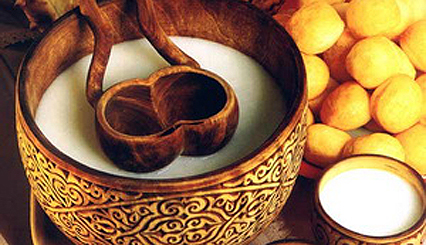 бірқалыпты шайқалып, көбіктеніп тұрған қымыз ең дәмді деп
